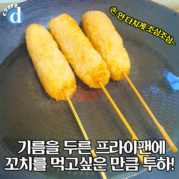 기름을 자작하게 두르고 꼬치를 투하. 175도의 기름에 6~7분 정도 튀겨주면 됩니다.