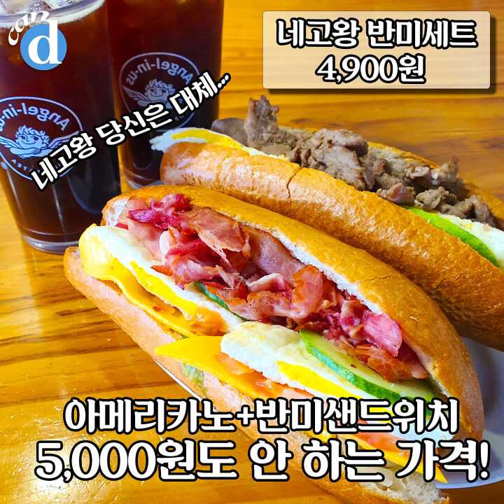 반미샌드위치 중 가장 저렴한 에그마요 샌드위치가 5,500원이고 아메리카노가 4,300원인 걸 고려하면 정~말 파격적이에요.