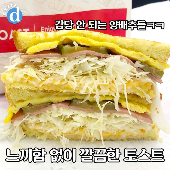 겉모습은 그냥 식빵 두 개 붙여놓은 것처럼 안에 토핑은 제대로 안 보여요ㅋㅋ