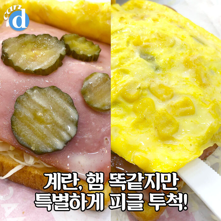 햄치즈와 구성은(슬라이스 햄, 치즈, 계란)똑같지만 특별하게 피클이 들어있어요. 햄 스페셜이라 특★!