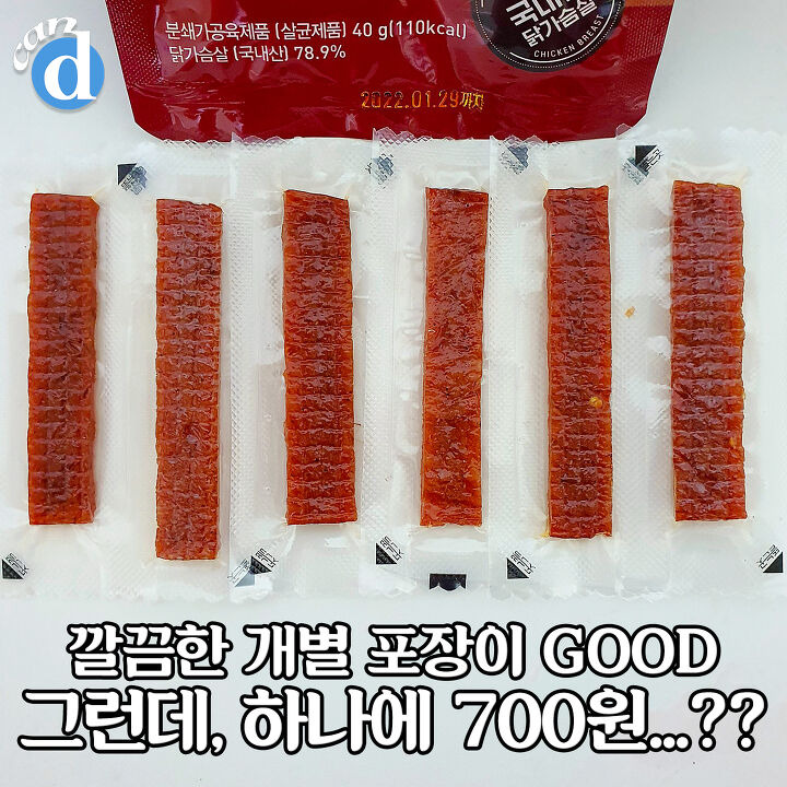 약 9cm 정도되는 길이의 육포가 6개 들어있는데 그럼 하나에 700원...?