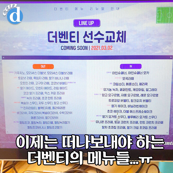 다들 집중!! 더벤티 선수교체한다!! 3/2부터는 오초민라떼 외에도 많은 음료가 변경된다구요.