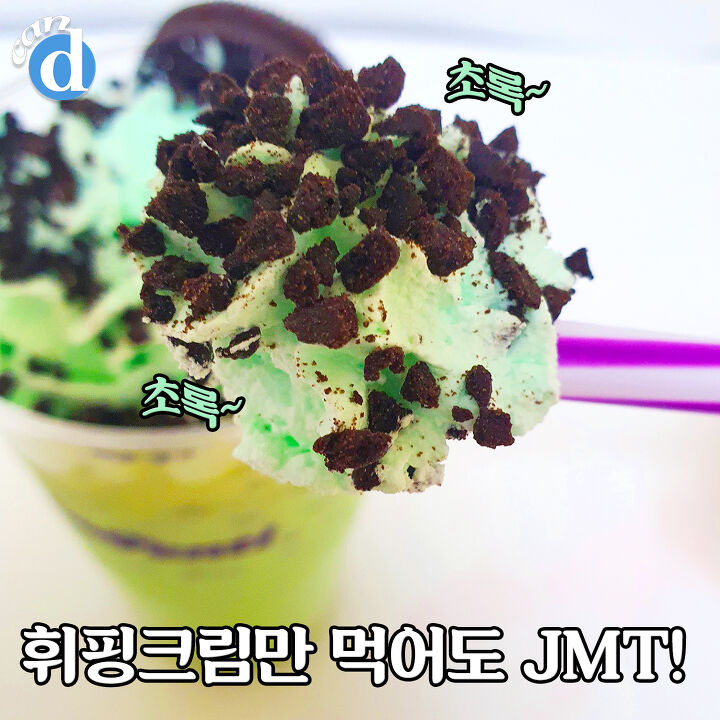 그 위에 엣지있게 올라간 오레오 쿠키는 휘핑크림에 찍어서 먹는 게 뽀인트랍니다. 민초파의 열렬한 지지를 받는 데는 이유가 다 있다구요.