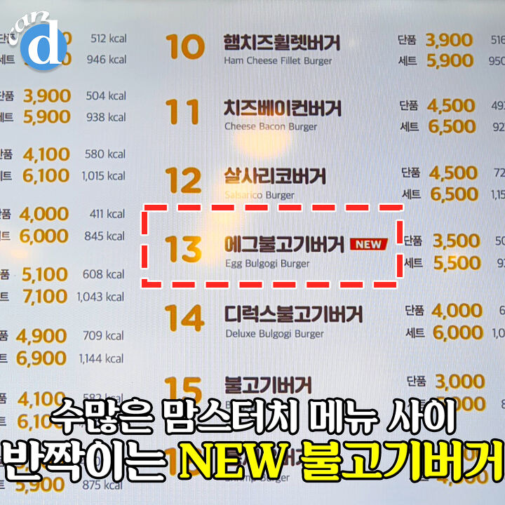 두근두근거리는 마음과 함께 캔디가 선택한 픽은 바로 'NEW'가 반짝이는 신제품 에그불고기버거랍니다!
