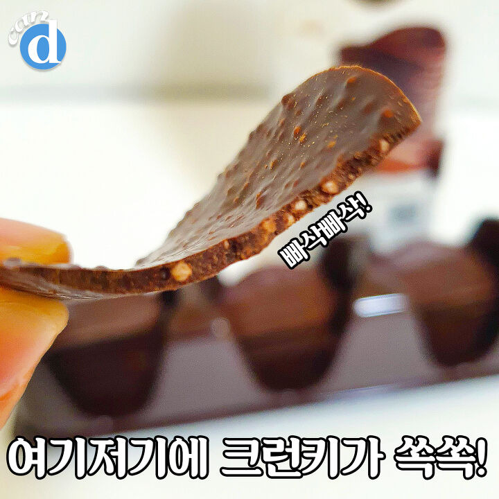 아쉽지 않게 쏙쏙 들어간 퍼프 라이스 덕분에 크런키 초콜릿을 먹는 느낌이 낭낭~하답니다.