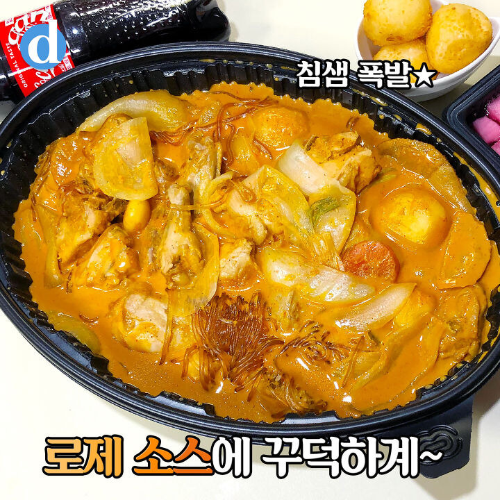 매콤 느끼함의 정석인 로제 찜닭으로 주문했어요. 두찜하면 다들 로제라고 하던데~