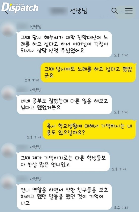 -ⓔ씨 : 유학 간다고 했을 때, 친구들이 송별회도 해줬다. 그만큼 사이가 좋았다. 나도 처음에는 억울해서 "혜수는 그런 애 아니다"고 말했는데, 사람들이 "소속사에서 돈 받았냐"며 따지더라. 너무 한 쪽 이야기만 듣고 믿는 거 같아 답답했다.