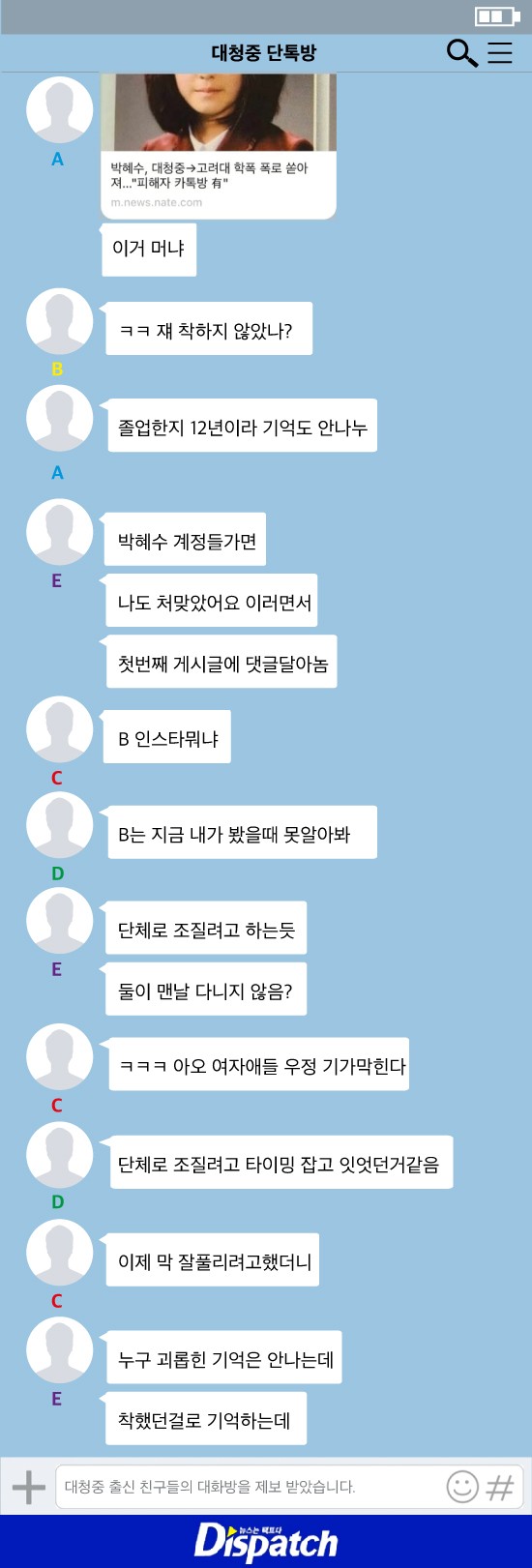 (내가 알기로) 중학교 때 박혜수와 A씨, B씨가 친했다. 그런데 왜 이렇게 공방을 벌이고 있는지 모르겠다. 이렇게 해서 본인이 얻는 게 무엇인지도 모르겠다.
