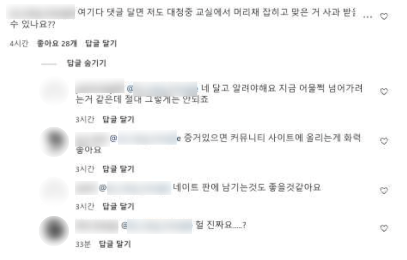 ① 여기다 댓글 달면 저도 대청중 교실에서 머리채 잡히고 맞은 거 사과 받을 수 있나요?