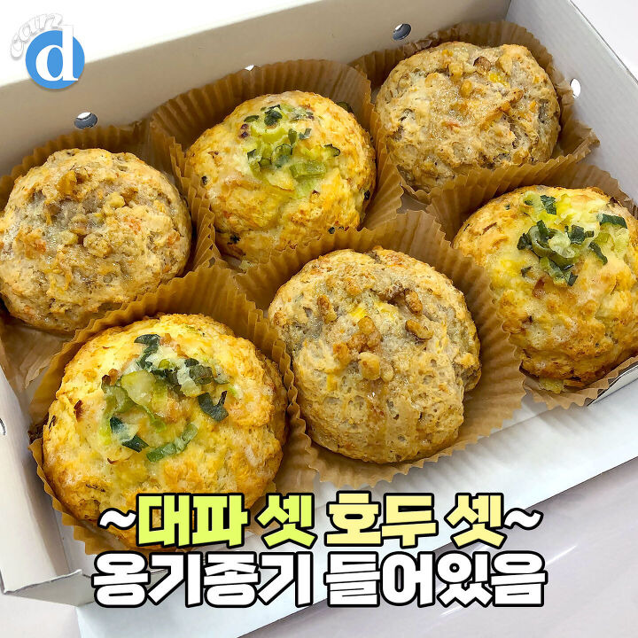 총 6개의 빵이 들어있답니다. 대파 세 개, 호두 세 개가 옹기종기~