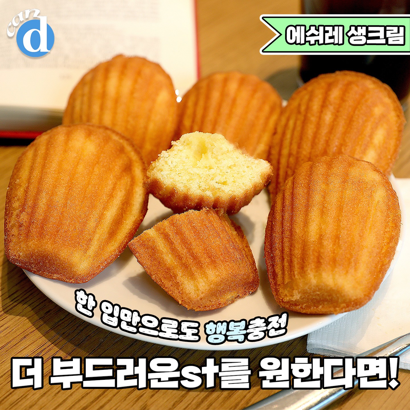에쉬레 마들렌이 촉촉 킹이었다면 생크림을 추가한 ‘에쉬레 생크림 마들렌’은 부드러움 킹이에요. 먹기 전엔 차이점을 못 찾지 않을까 했는데, 훨씬 부드럽더라고요. 식감을 더 중요하게 생각하신다면 에쉬레 생크림 마들렌으로 추천할게요.