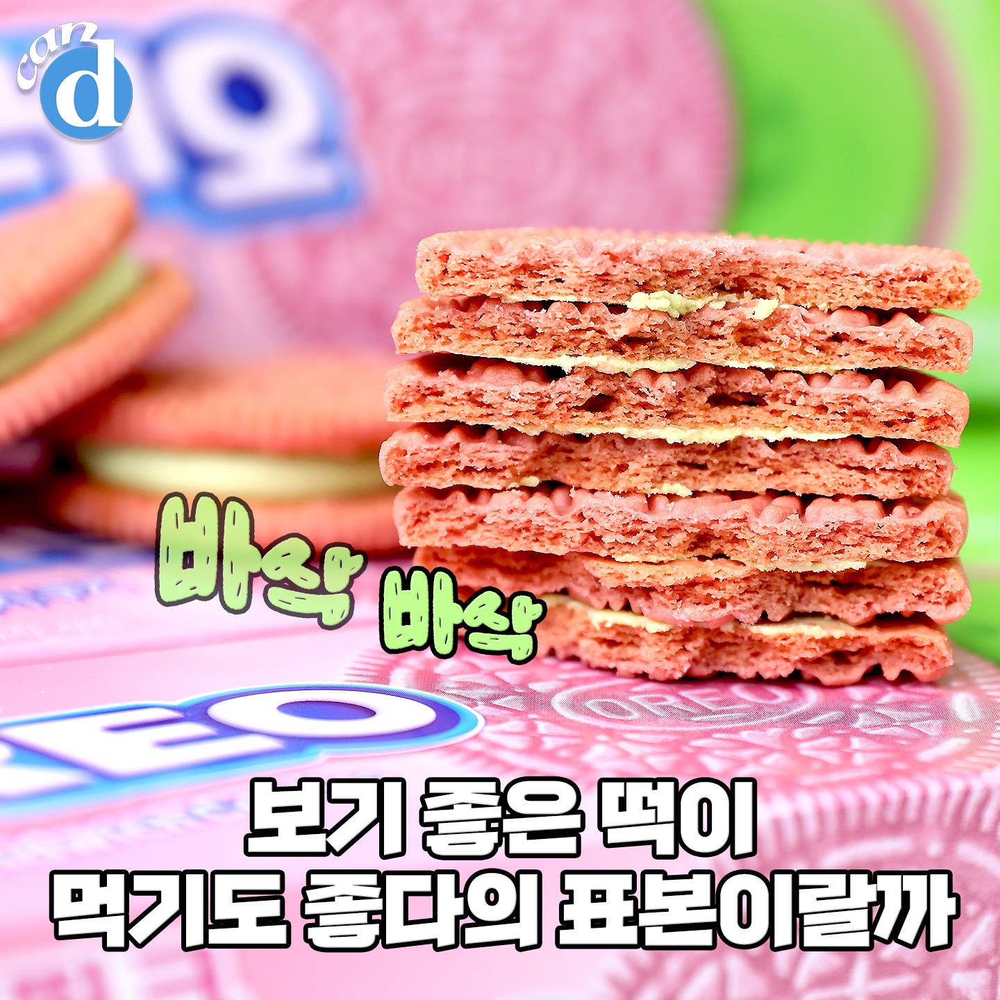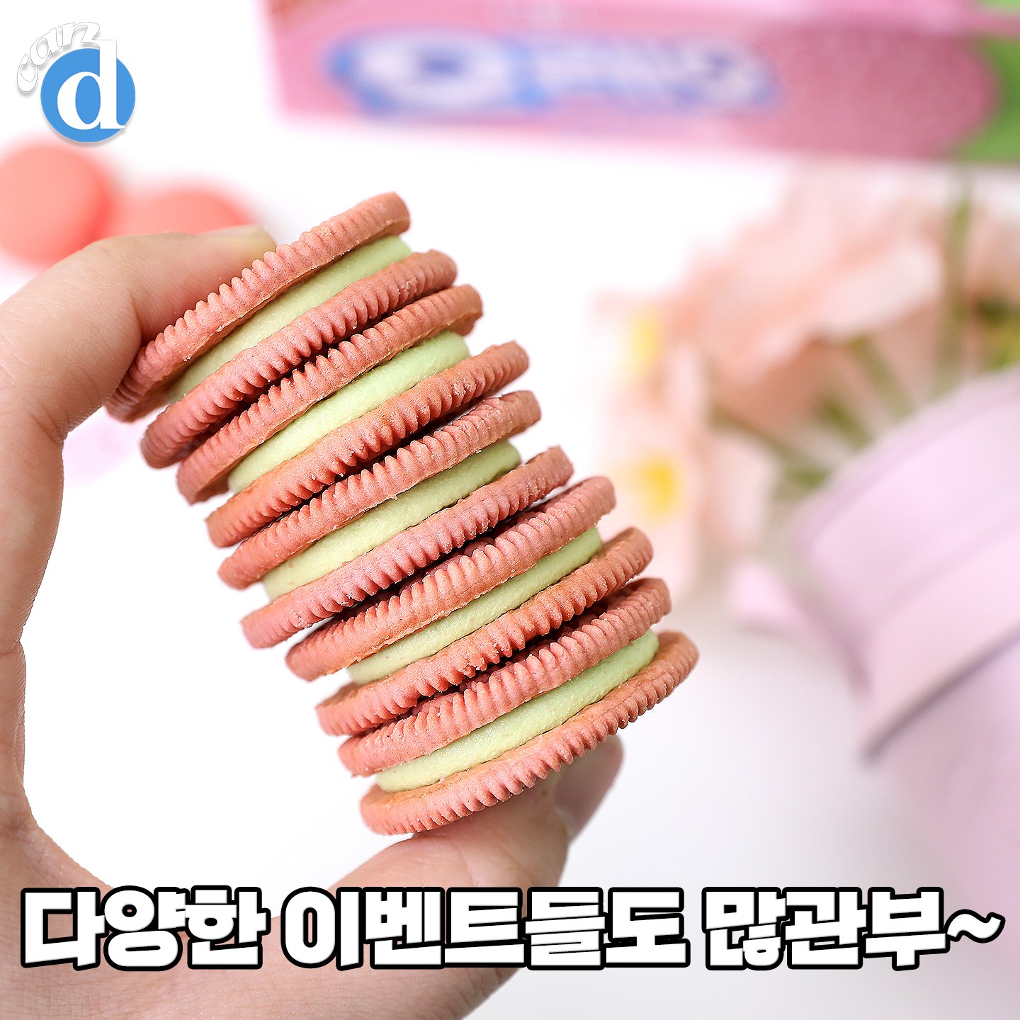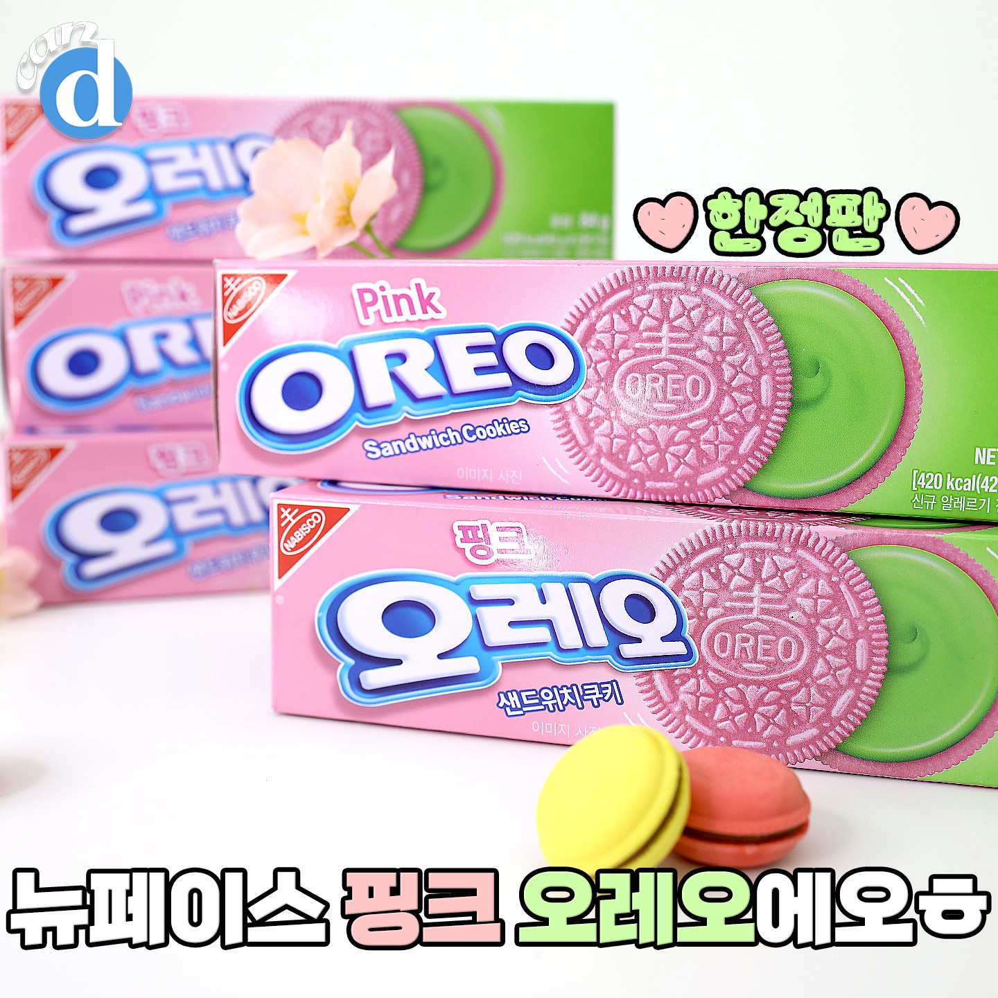 봄 시즌 한정에 맞춘 오레오 쿠키 색! 봄을 쏘옥 빼닮은 핑크예요. 구매력 뽐뿌 오게 하는 핑크색 쿠키! 너무 예쁘지 않나요?