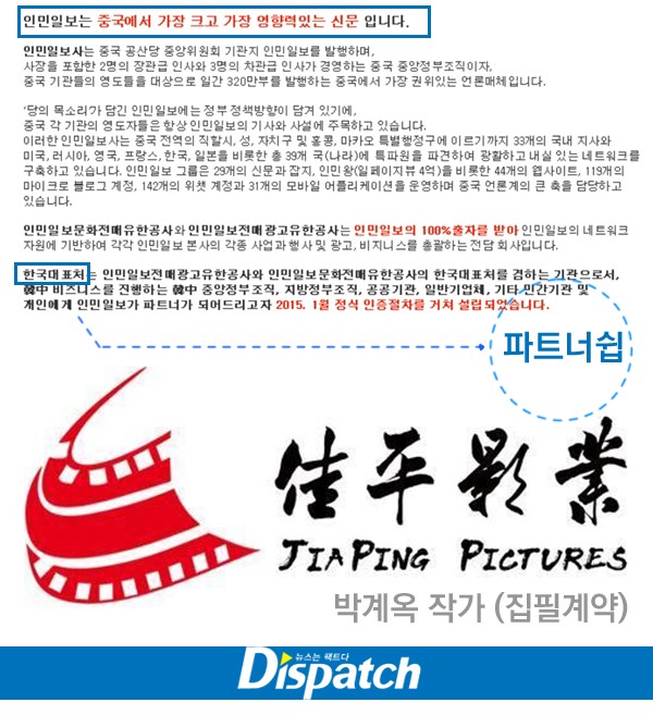 심지어 박계옥은 친중 성향이 강한 작가다. 지난 15일 '항저우쟈핑픽처스유한공사'(이하 '쟈핑픽처스')와 집필 계약을 체결했다.