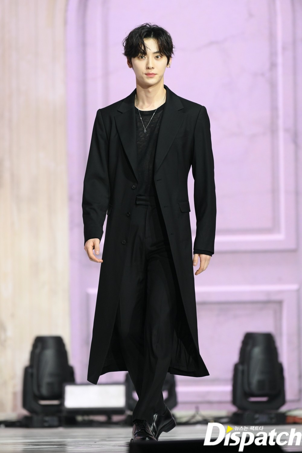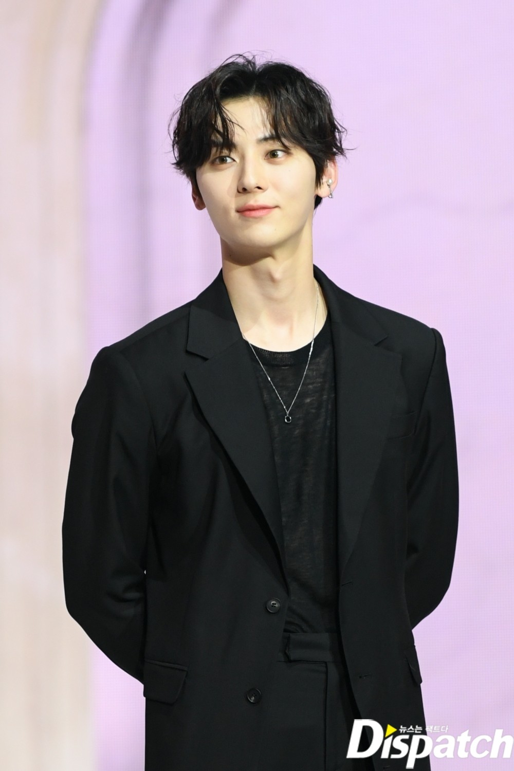 민현은 올블랙 의상으로 시선을 사로잡았다.