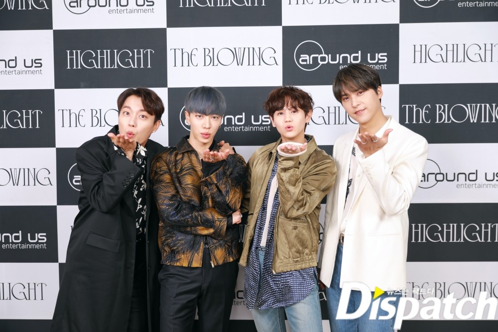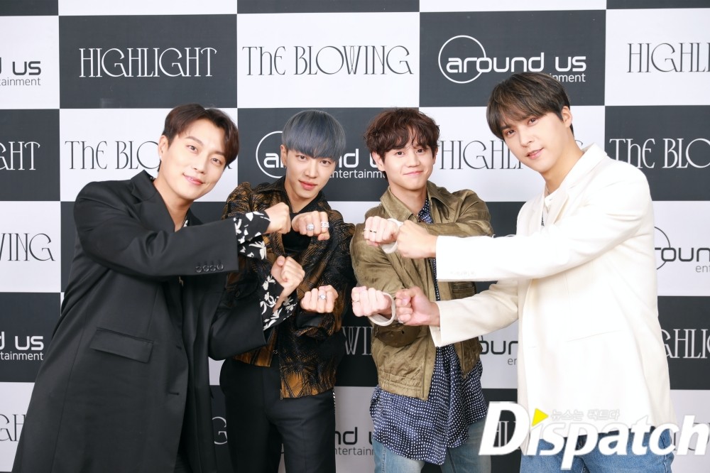 [Dispatch=송효진기자] 그룹 '하이라이트'가 3일 오후 열린 세 번째 미니앨범 ‘더 블로잉(The Blowing)’ 발매 기념 온라인 기자간담회에서 포즈를 취하고 있다.