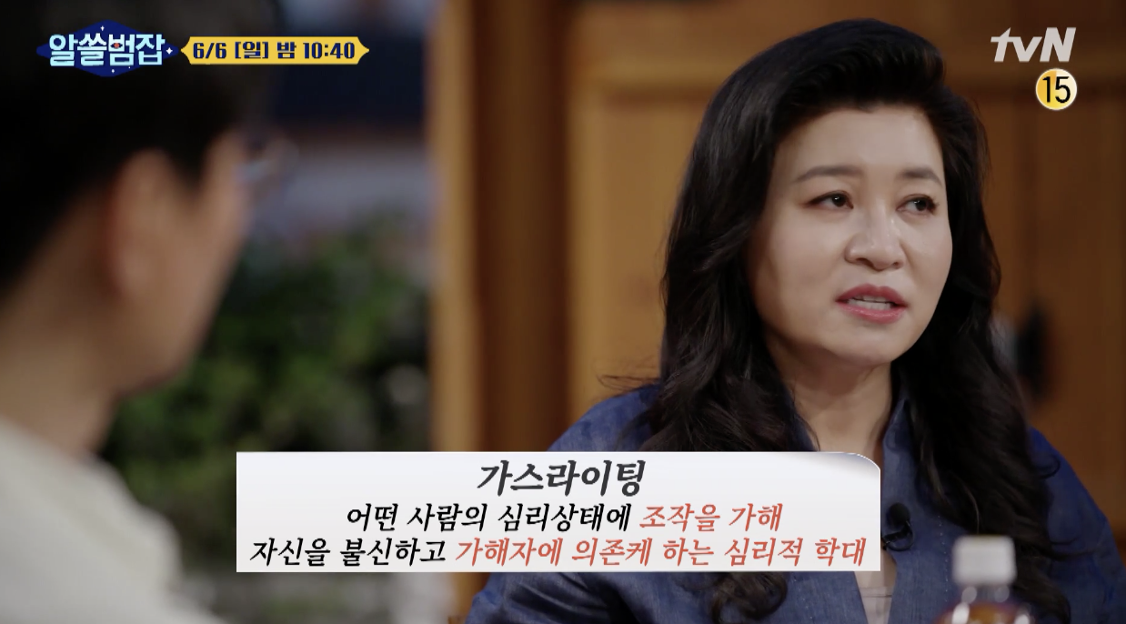 가스라이팅에서 멀어지는 법도 소개했다. "생각보다 아주 가까운 사람이 충고하는 건지 가스라이팅인지 헷갈리게 만들 수 있다"며 "그 사람과의 관계가 괴롭다면 거리를 두고 한번 생각해봐야 한다”고 조언했다.