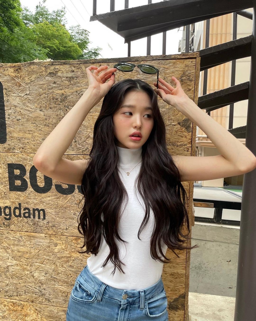 장원영은 흰티와 청바지를 입었습니다. 선글라스로 시크한 매력을 더했는데요. 2004년생이라는 나이가 믿기지 않는 아우라가 느껴졌죠.