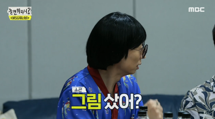 유재석은 "그림 샀어?"라고 물었고, 이동휘는 "가격이 좀..."이라며 말끝을 흐렸습니다. 유재석은 작품 가격을 궁금해 했는데요. 나얼은 "그렇게 비싸지 않은데.. 잘 맞춰드리겠다"라고 답해 연이은 폭소를 안겼죠.