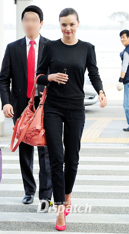 이 날 공항에 모습을 드러낸 미란다 커는 압도적인 각선미로 많은 팬들의 놀라움을 자아냈다. 올 블랙 색상의 의상으로 시크한 매력을 드러낸 커는 선글라스와 핑크빛 색상의 하이힐로 포인트를 줬다.
