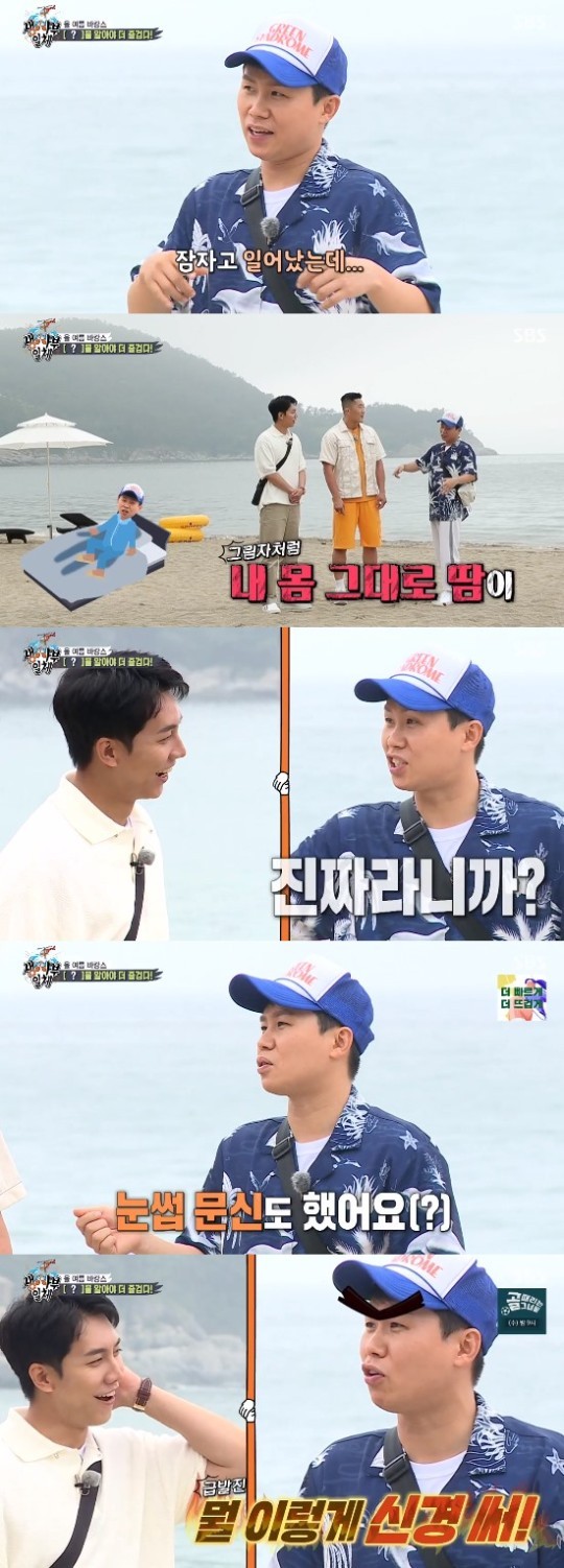 이승기는 "그 정도 안 흘렸잖아. 그 정도면 살이 쏙 빠지지"라고 믿지 못했는데요. 양세형은 "진짜다. 나도 내가 그럴 줄 몰랐다"며 "그런데 내가 꼬인 게 어제 백신 맞았지. 그리고 엊그저께 눈썹 문신도 했다"라고 TMI를 방출해 웃음을 자아냈습니다.