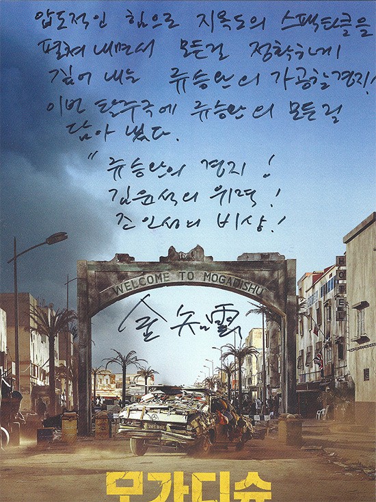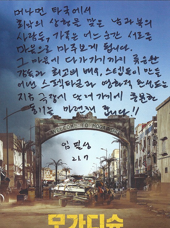 봉준호, 김지운, 임필성 감독이 영화 '모가디슈'(감독 류승완) 추천사를 손편지로 남겼다. 세 사람은 지난 22일 오전 10시 CGV용산에서 열린 IMAX 기술시사회에 참석했다.