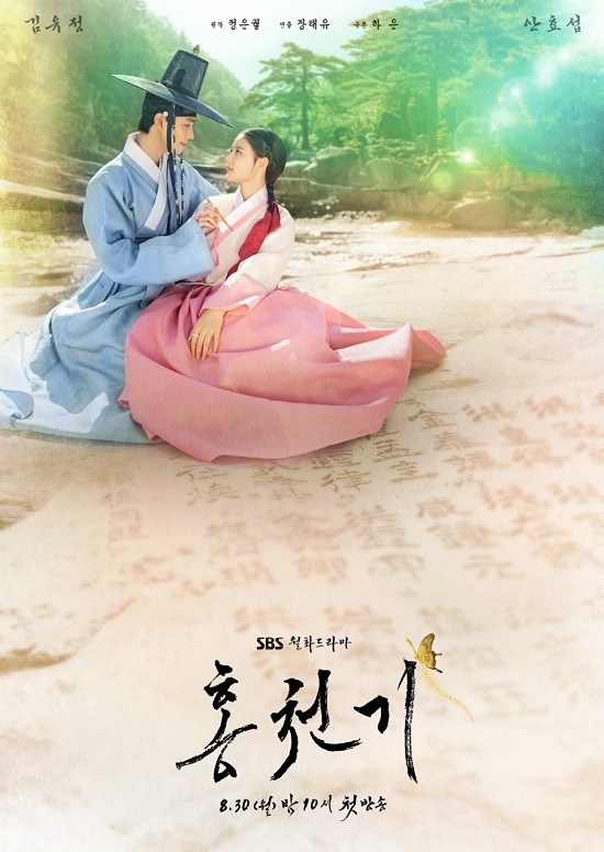 SBS-TV 새 월화드라마 '홍천기'(연출 장태유, 극본 하은) 측이 12일 메인 포스터를 공개했다. 주인공 김유정(홍천기 역)과 안효섭(하람 역)의 모습이 담겼다.
