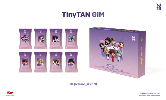 '타이니탄 김'은 '다이너마이트'와 '매직 도어' 2가지 버전으로 구성됐다. 김치, 와사비, 불닭, 마라, 불고기, 버터갈릭, 치즈, 오리지널 등 총 8가지 맛으로 출시한다.