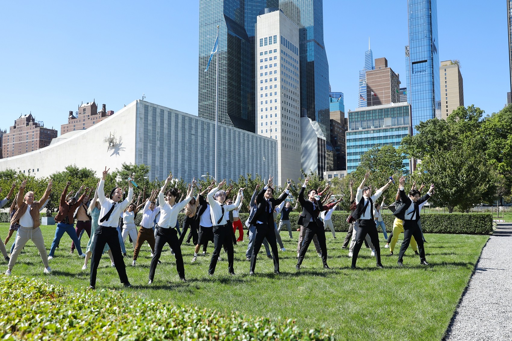 약 7분간 한국어로 연설을 했습니다. 청년 세대에게 희망의 메시지를 전했죠. 유엔 본부를 무대로 '퍼미션 투 댄스' 퍼포먼스도 펼쳤습니다.