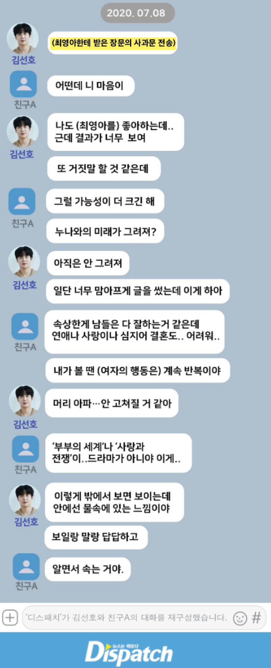 최영아 씨, 2020년 7월 8일을 기억하세요? ③ 당신이 보낸 장문의 사과 문자를 구했습니다. (출처는 김선호의 친구 A입니다.)