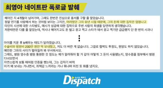 ‘디스패치’가 확인한 내용은 이 정도입니다. 최영아 씨, 당신 친구들이 거짓말을 한 건가요? 저희는 팩트 체크를 끝냈습니다.