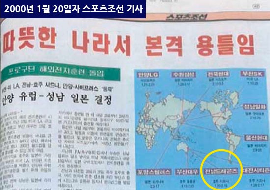 ‘디스패치’는 2000년 1월 20일 자 ‘스포츠조선’ 관련 기사를 입수했다. <따뜻한 나라에서 본격 용틀임>이라는 제목으로 작성된 전남 드래곤즈 전훈 기사였다.