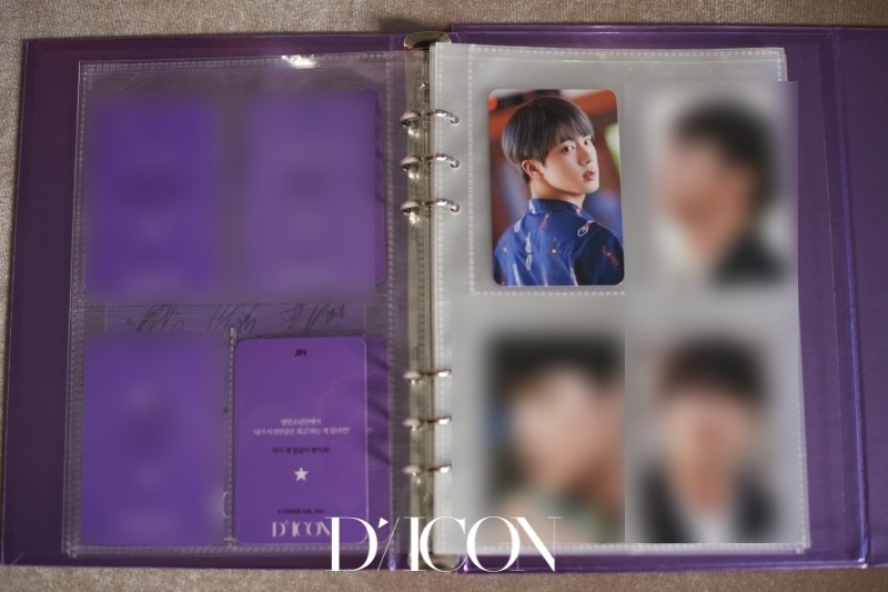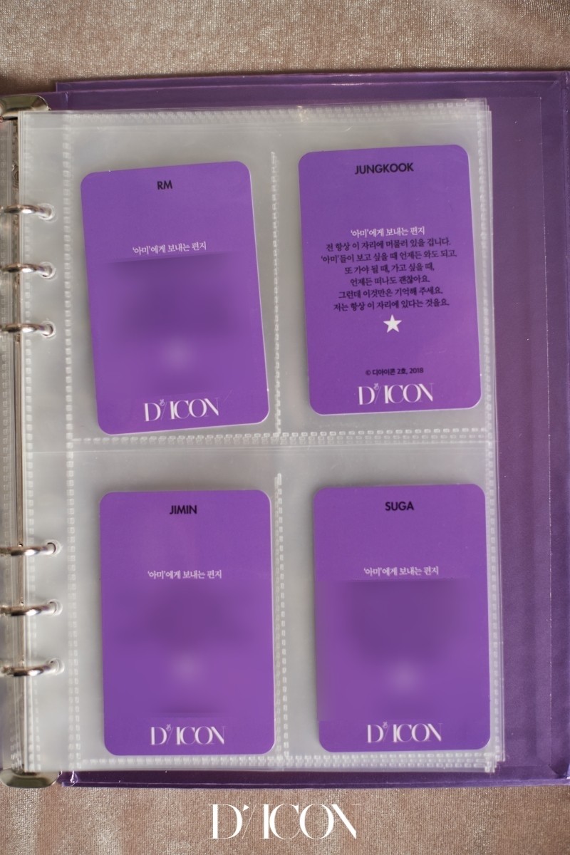 ⑥ 러브레터 편집도 가능합니다. 예를 들어 ‘아미에게 쓴 편지’를 앞면에 배치하는 겁니다. 보는 재미, 그리고 읽는 재미. ‘커스텀북’은 뒷면을 허투루 쓰지 않았습니다.