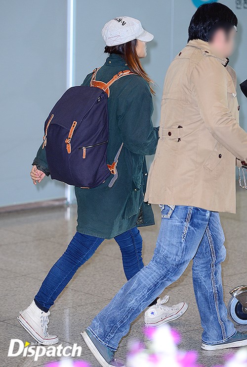 소탈한 패션은 돋보였다. 톱스타답지 않은 수수한 옷차림이었다. 그러나 커플의 향기는 물씬했다. 두 사람 모두 청바지 위에 야상을 걸치고 모자를 썼다. 어깨에 맨 백팩은 같은 브랜드로 커플 가방이었다.