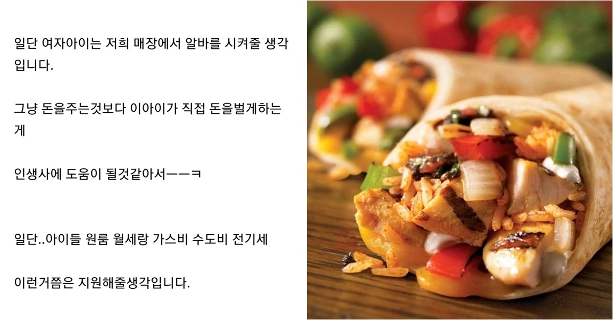 A씨는 급히 제일 잘 나가는 치킨 부리또와 불고기 부리또 6개를 구워냈습니다. 하지만 남매는 고개를 푹 숙이고, 마치 죄인마냥 서 있었죠.