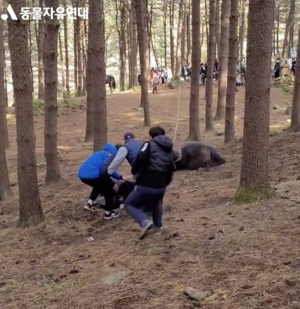 ’동물자유연대’가 지난해 11월 촬영 영상을 공개했다. 시청자는 경악했다. 동물 학대 논란이 제기됐다.