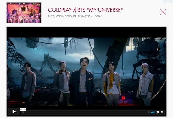 '마이 유니버스' 뮤직비디오는 콜드플레이의 '하이어 파워', 에드시런의 '쉬버스', 핑크의 '올 아이 노우 소 파', 테일러 스위프트의 '올 투 웰'과 경쟁을 펼친다.