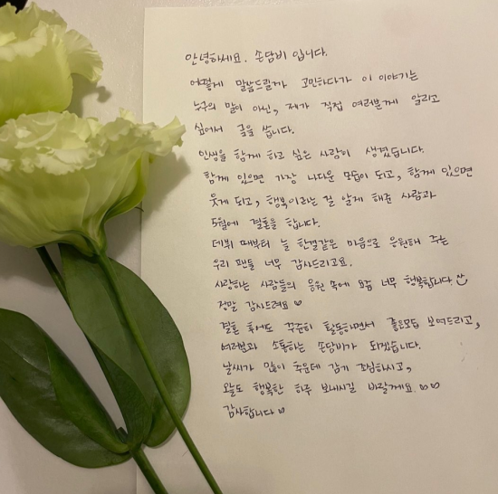 손담비도 직접 팬들에게 소식을 전했다. 이날 자신의 SNS에 “직접 알리고 싶어 글을 썼다”며 “인생을 함께 하고 싶은 사람이 생겼다”고 말했다.