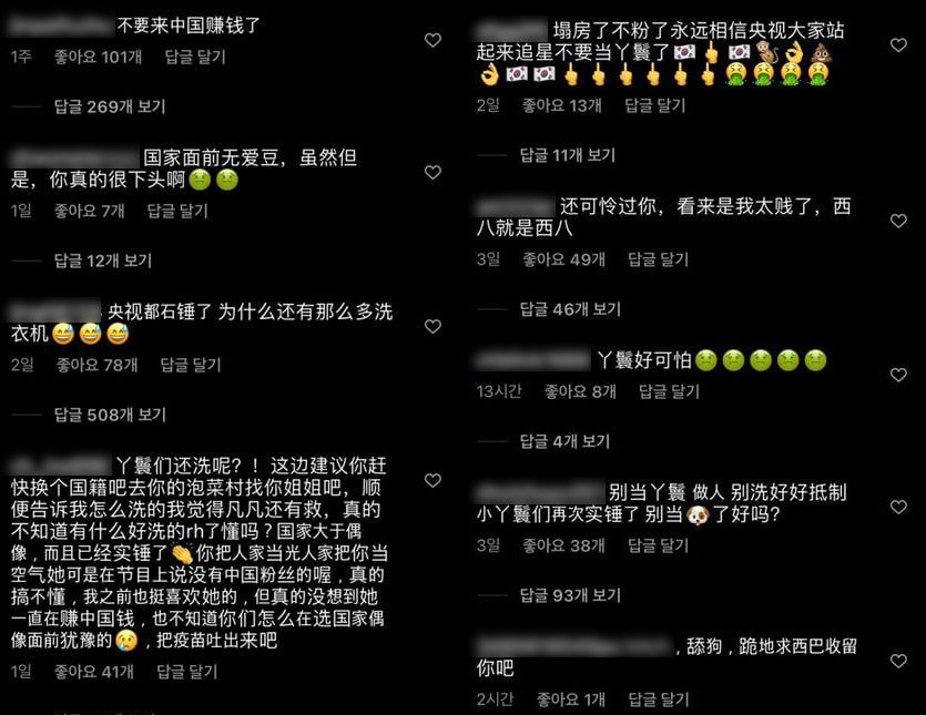 댓글 내용은 "중국팬이 얼마나 좋아했는데. 앞으로 중국에 오지 말아라", "중국에 돈벌러 올 생각하지 말아라", "중국팬이 뭐라고 생각하냐. 제니는 중국팬을 잃었다", "우리는 제니를 사랑하지만, 제니보다 중국을 더 사랑해" 등 이었죠.