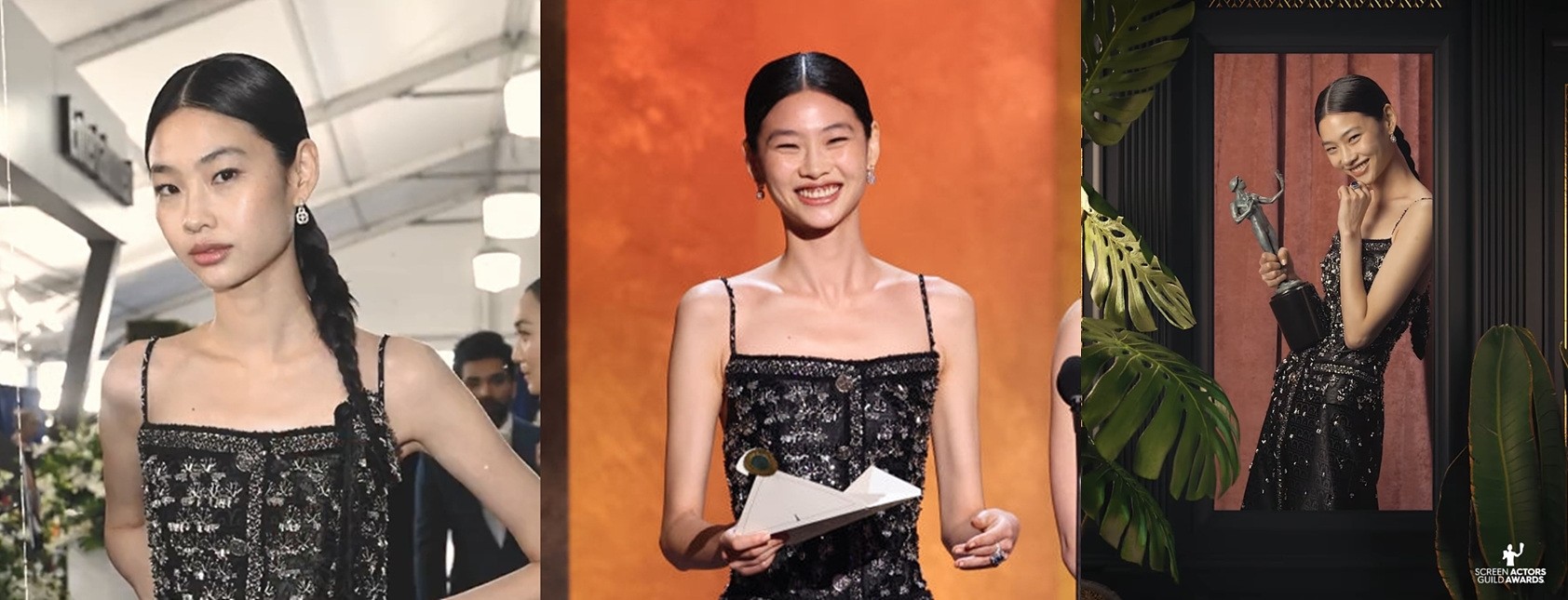 모델 겸 배우 정호연이 한국의 멋을 전 세계에 알렸다. 제 28회 미국배우조합상(美 SAG)에서 전통적이면서도 트렌디한 패션을 선보였다.