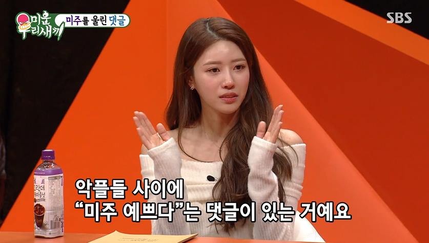 이날 MC 서장훈은 "씩씩한 미주가 악플 때문에 운 적이 있다고 들었다"며 물었습니다.