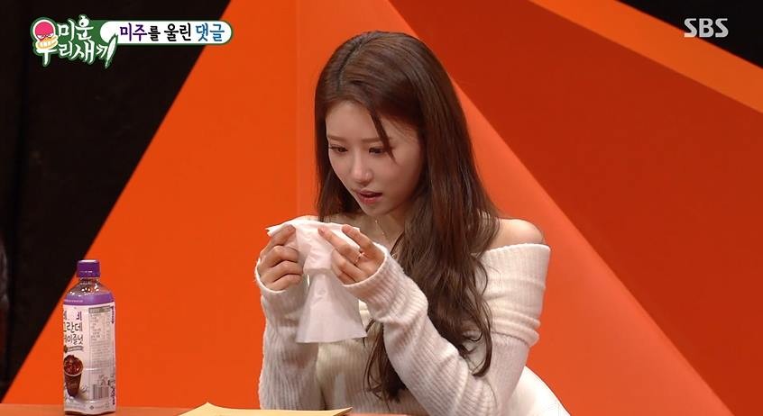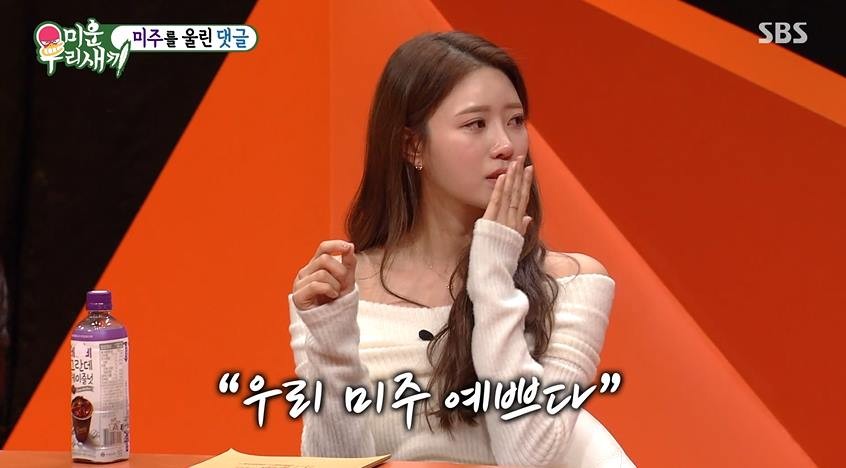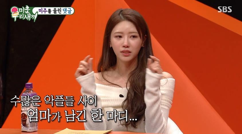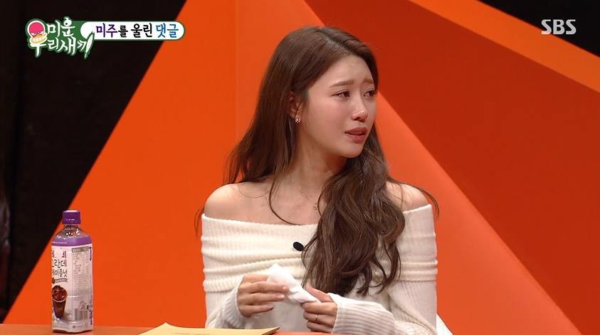 미주는 "악플이 굉장히 많이 달렸었다. 그사이에 한 문장이 있었다"며 울컥해 말을 잇지 못하는 모습이었죠.