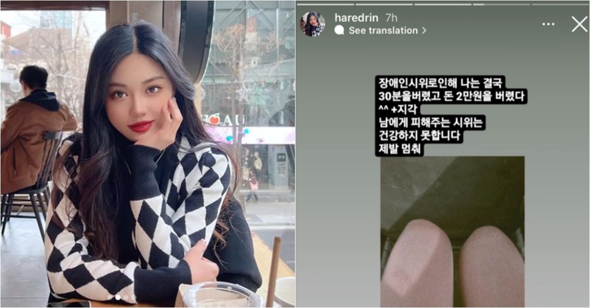 이하린은 "장애인 시위로 인해 나는 결국 30분을 버렸고 돈 2만 원을 버렸다+지각"이라며 "남에게 피해주는 시위는 건강하지 못합니다. 제발 멈춰"라고 적었습니다.