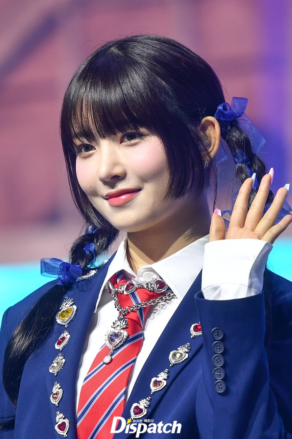 레이는 이날 양갈래 머리로 깜찍함이 돋보이는 헤어스타일로 취재진의 이목을 사로잡았다.