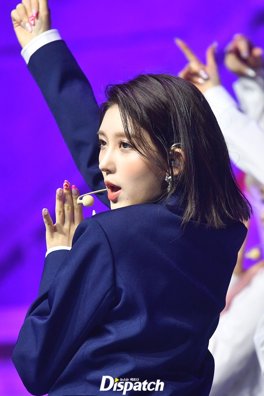 가을은 이날 짧게 자른 단발 머리로 컴백 무대에 올라 눈길을 끌었다.