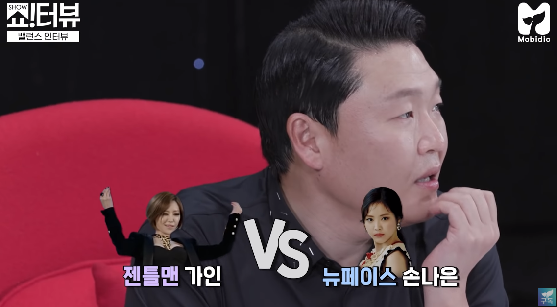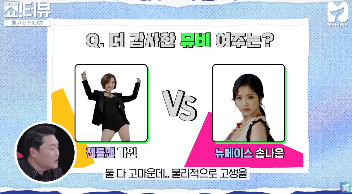 싸이는 '젠틀맨'에 출연한 손가인과 '뉴페이스'에 출연한 손나은 중 골라야했죠.
