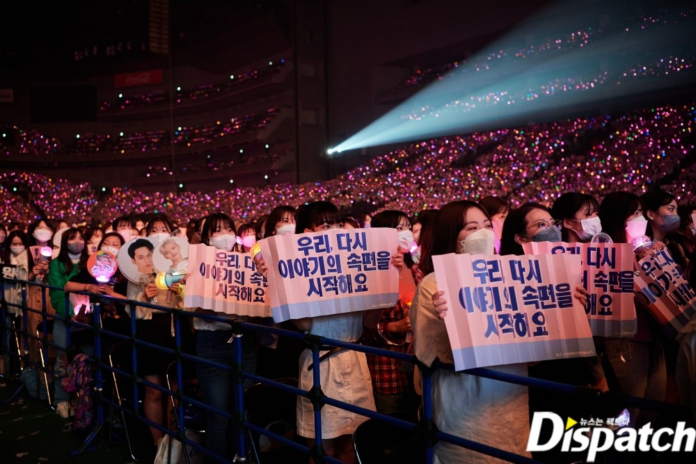 ‘아이노치카라’가 흘러나오자, 팬들은 자리에서 일어섰습니다. 그도 그럴게, 이 곡은 팬들에 대한 사랑을 가득 담고 있는 곡이거든요. 팬들은 자리에서 일어나 플래카드를 펼쳐 들었습니다.