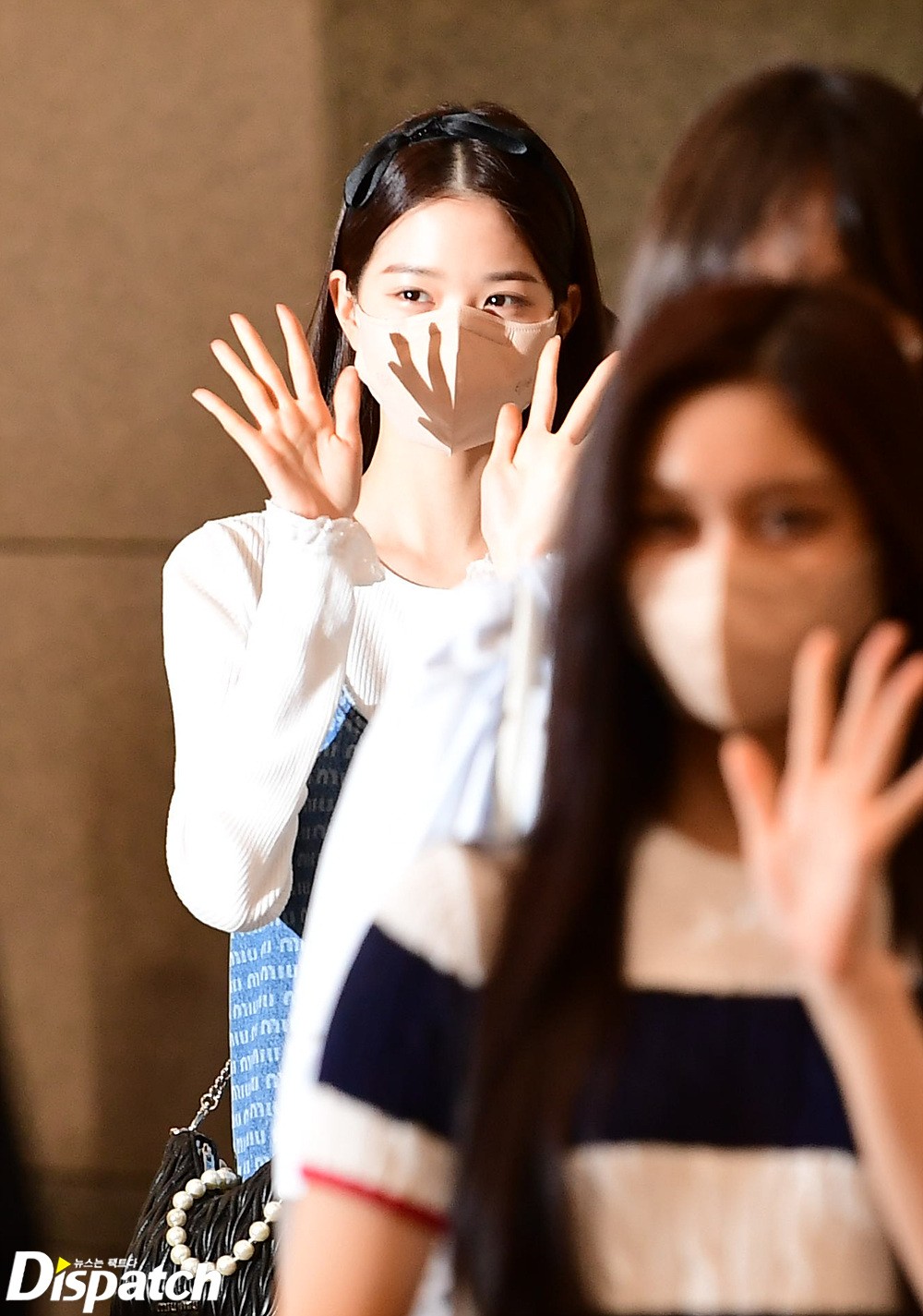 장원영은 공항에 모인 팬들을 위해 환한 미소로 화답했다. 인형같은 외모와 우월한 비율도 돋보였다.