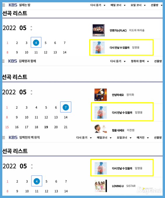 '디스패치'는 KBS 라디오 선곡 리스트를 전수 조사했다. KBS에서 송출되는 112개 라디오 프로그램 홈페이지에 접속, 집계 기간(2~8일)에 방송된 선곡표를 모두 살폈다.