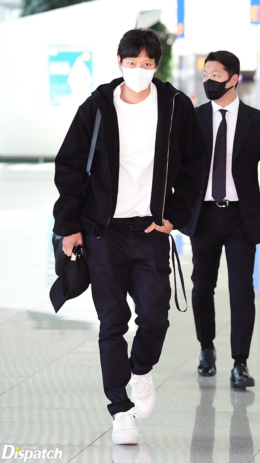 강동원은 심플한 화이트 티셔츠와 블랙 재킷으로 공항패션을 완성했다. 멀리서도 돋보이는 완벽한 비율이 눈길을 끌었다.