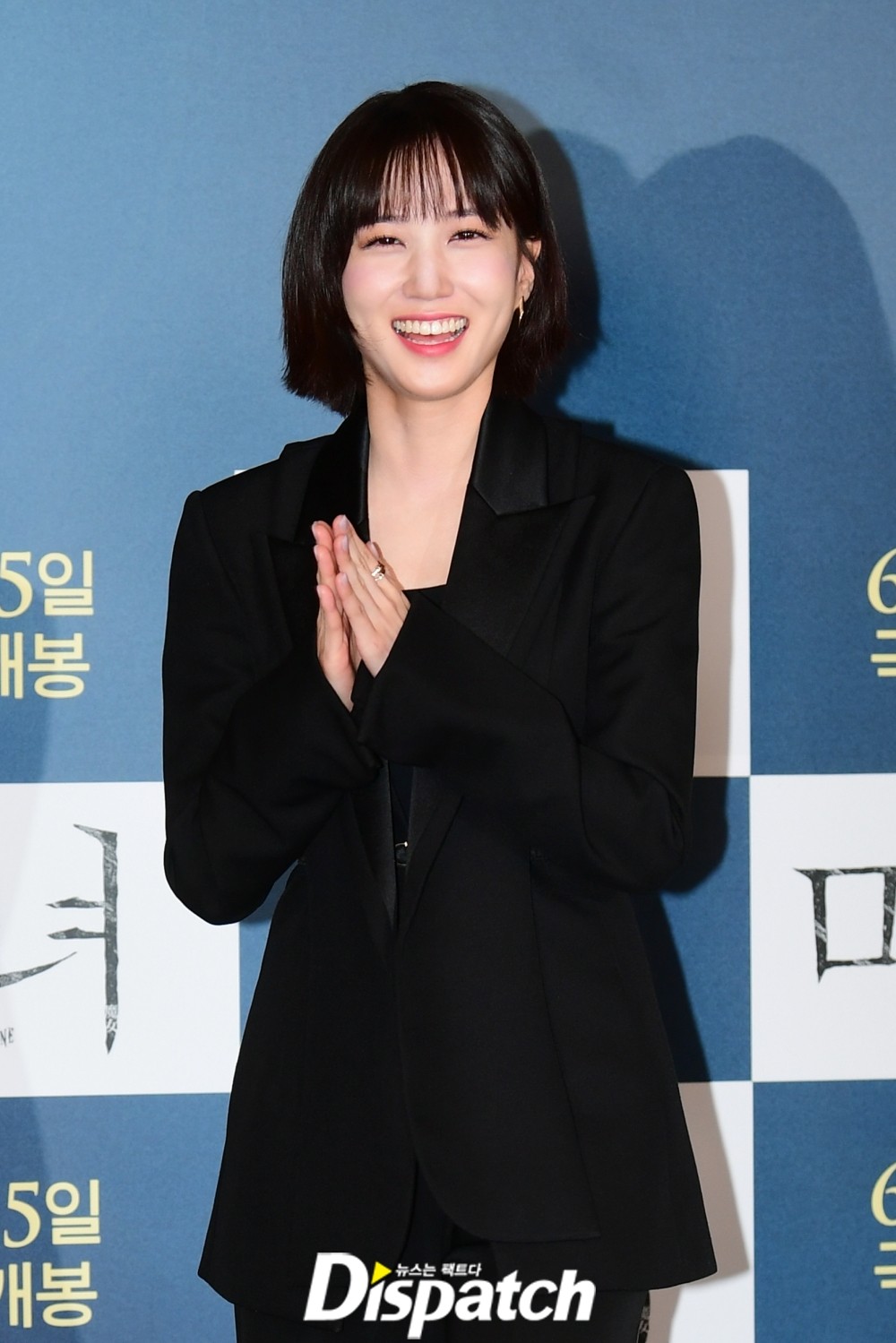 박은빈은 블랙 수트로 시크미를 드러냈다. 손하트 포즈로 애교도 빼놓지 않았다.